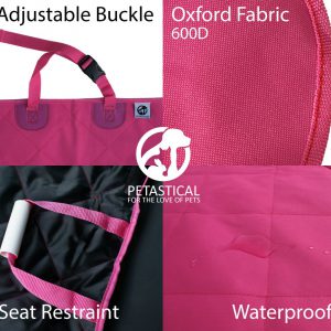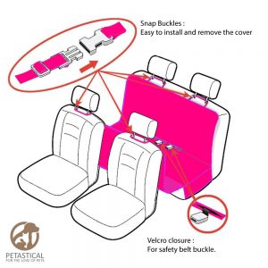 KEEP YOUR PET SAFE AND SECURE - PRACTICAL AND DURABLE - 100% waterproof, 2 seat belt openings with velcro closures, 4 snap buckle straps for headrest attachment. safety seat anchors to prevent movement. Non-slip backing.